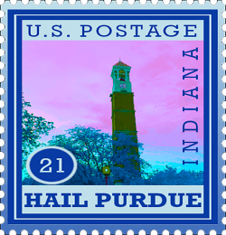 In my stamp, I used a photo I took of the Purdue bell tower on my very first day of freshman year. I wanted to use this photo because it brings me a rush of emotions about the beginning of my journey at Purdue, plus it captures the beauty of campus. I also wanted it to encompass the traditional, old-fashioned appeal of US postal stamps.