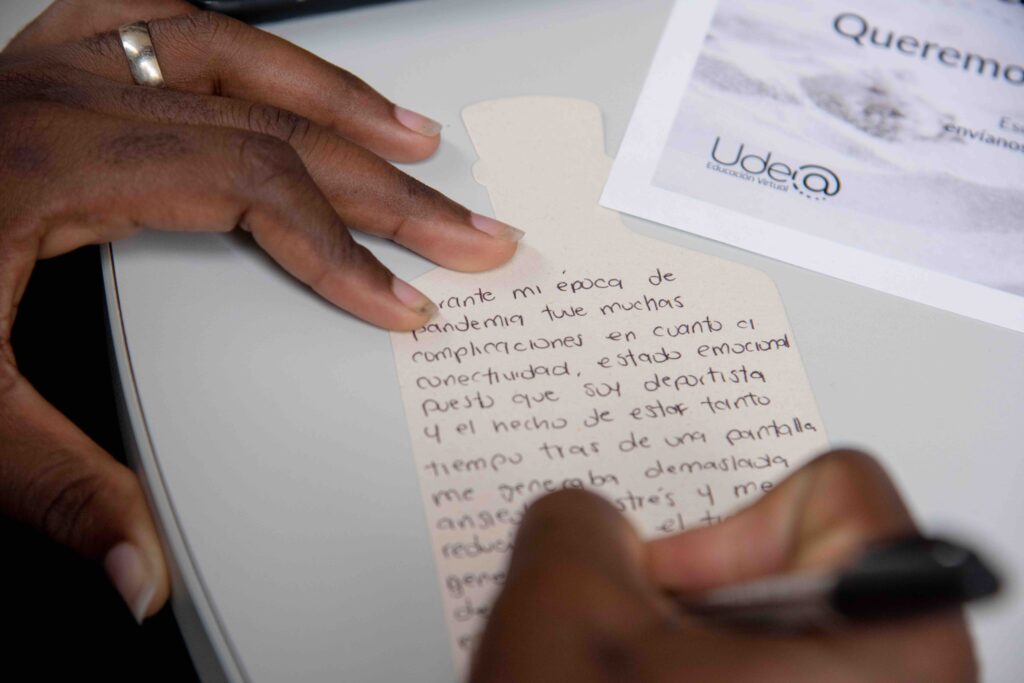 - En el momento de brindar la charla o taller, un moderador del equipo Ude@ se encargará de la transmisión y estará atento para apoyar al ponente en caso de que llegue a ocurrir alguna eventualidad o ayudar a los asistentes si se llegaran a presentar problemas técnicos. Este también reunirá las preguntas y las presentará al ponente en los espacios previamente establecidos.